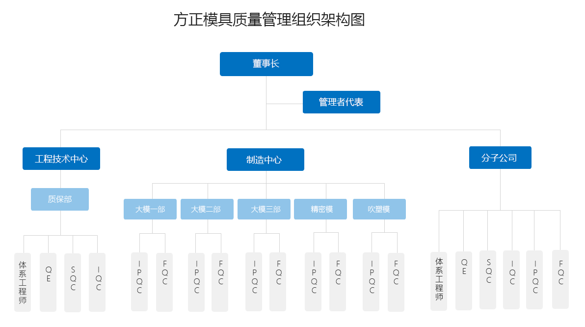 “技術(shù)展現(xiàn)實力,品質(zhì)贏得信賴”,在方正公司,技術(shù)是第一生產(chǎn)力,而質(zhì)量則是贏得客戶信賴的保障,方正的質(zhì)量團隊攘括了進料檢驗、過程檢驗、產(chǎn)品檢驗、電極檢驗、出貨檢驗及質(zhì)量管理體系,在各類精密測量設備資源及具有相關資質(zhì)的質(zhì)量人員的支持下,真正意義上實現(xiàn)了從原料、過程、最終檢驗對模具生產(chǎn)質(zhì)量的嚴格控制,并通過質(zhì)量管理體系的實施,實時監(jiān)控和提升整個公司的質(zhì)量管控程度。